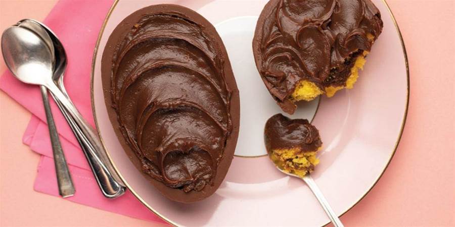 Sobre uma das metades do Ovo CLASSIC, distribua 1 xícara (chá) de bolo de cenoura.